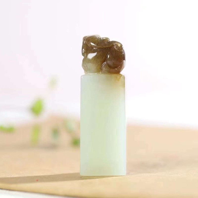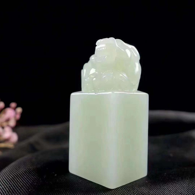 サプライチェーン玉器天然新疆と田玉青花印章玉彫刻書道の個人印鑑は証明書を送ります。