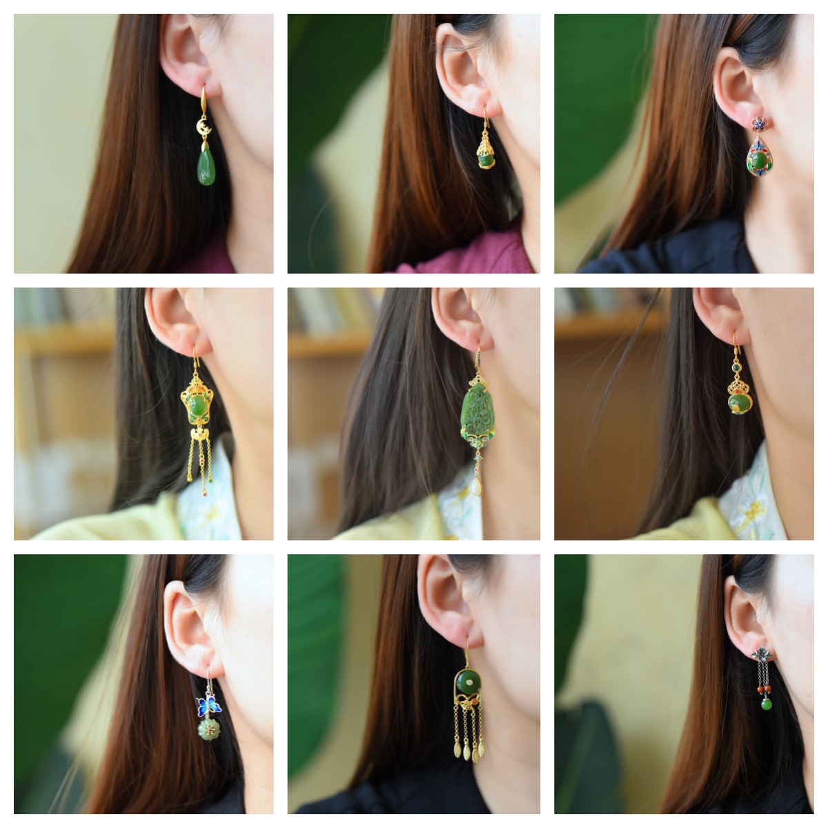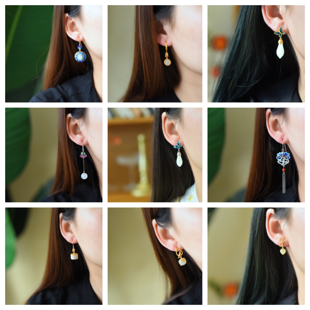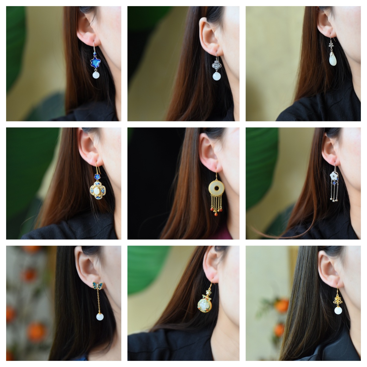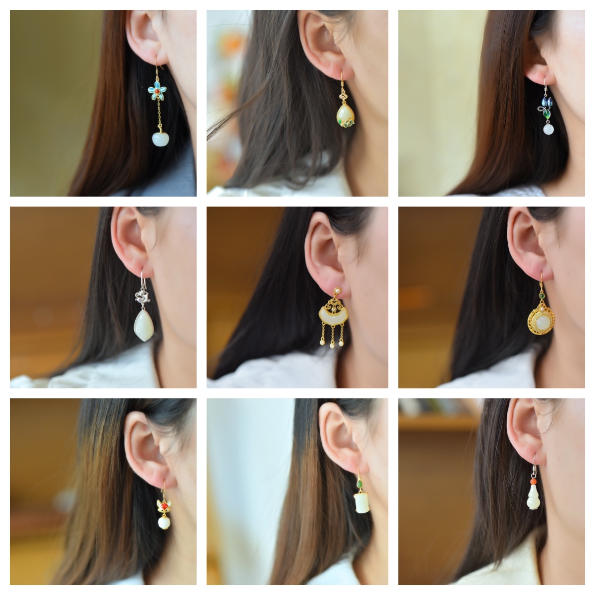 S925銀モザイク和田玉水滴エナメルイヤリング和田玉円卵麺. 如意鎖エナメル流蘇イヤリング