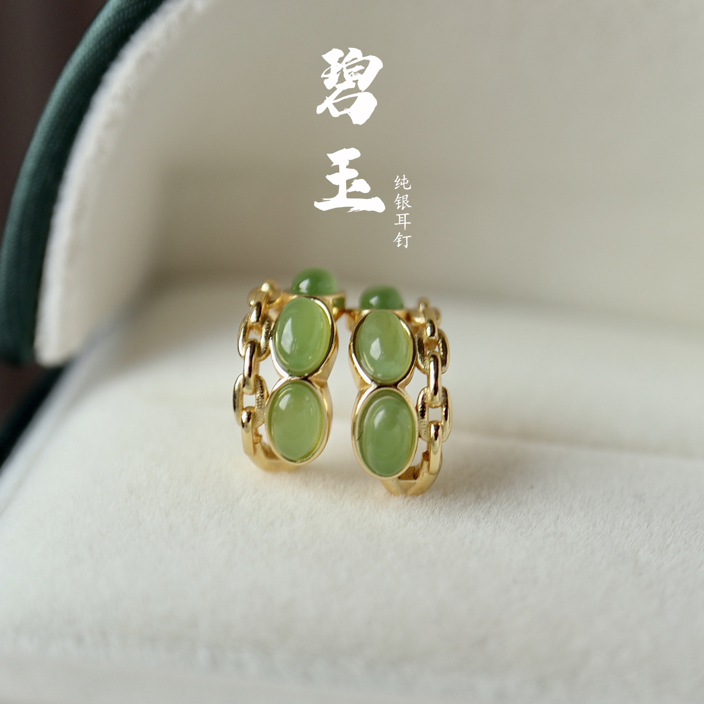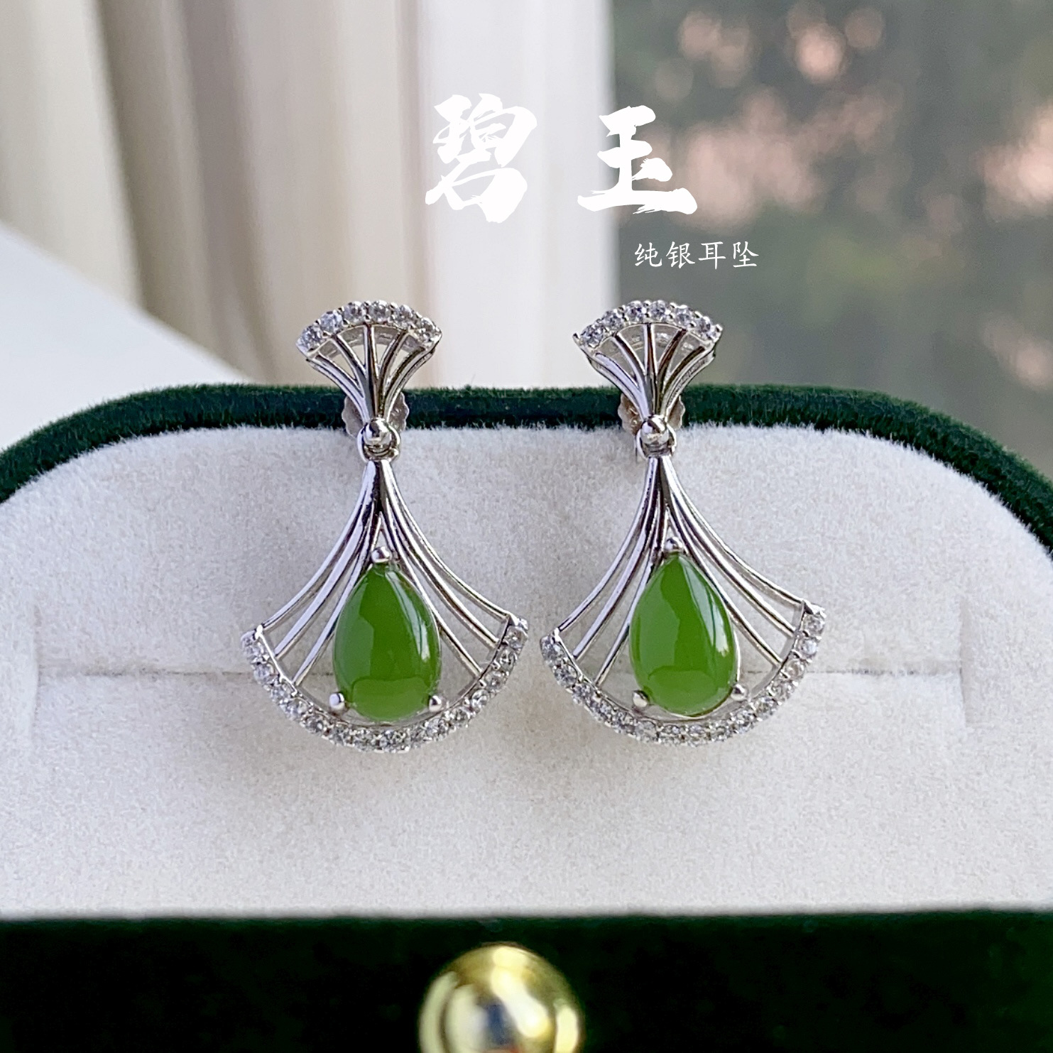 天然和田玉碧玉ピアス925銀アクセサリー純銀高級感養耳洞銀針小衆馬眼イヤリング