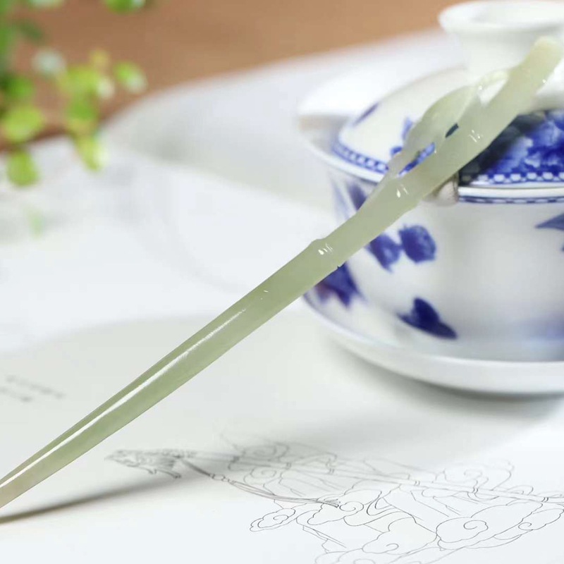 和田玉サプライチェーン天然新疆和田玉青海材料晴水色玉竹節ヘアピン工芸品