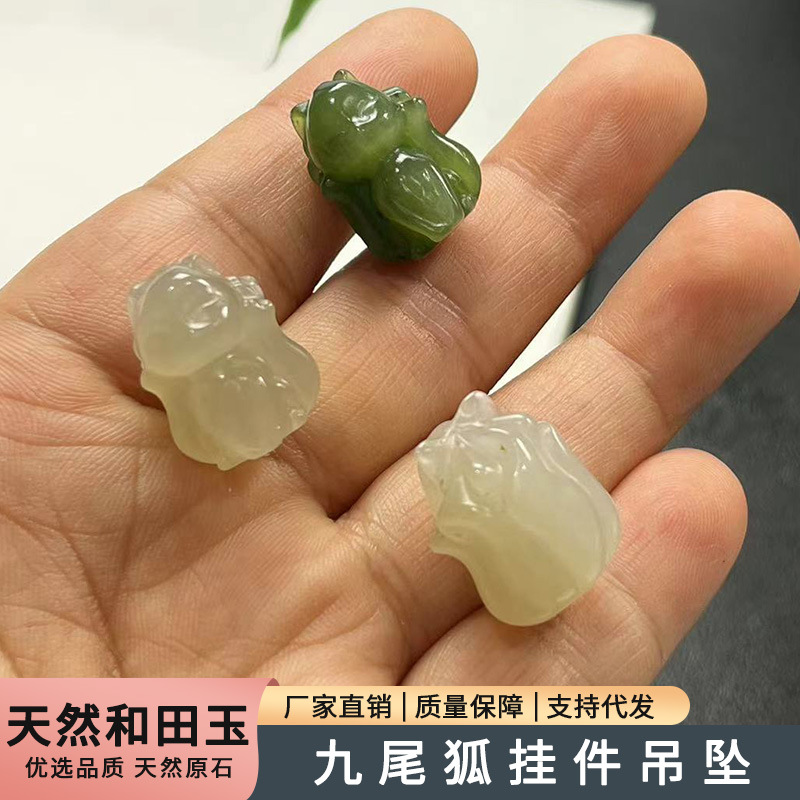 天然和田玉碧玉九尾狐ペンダント