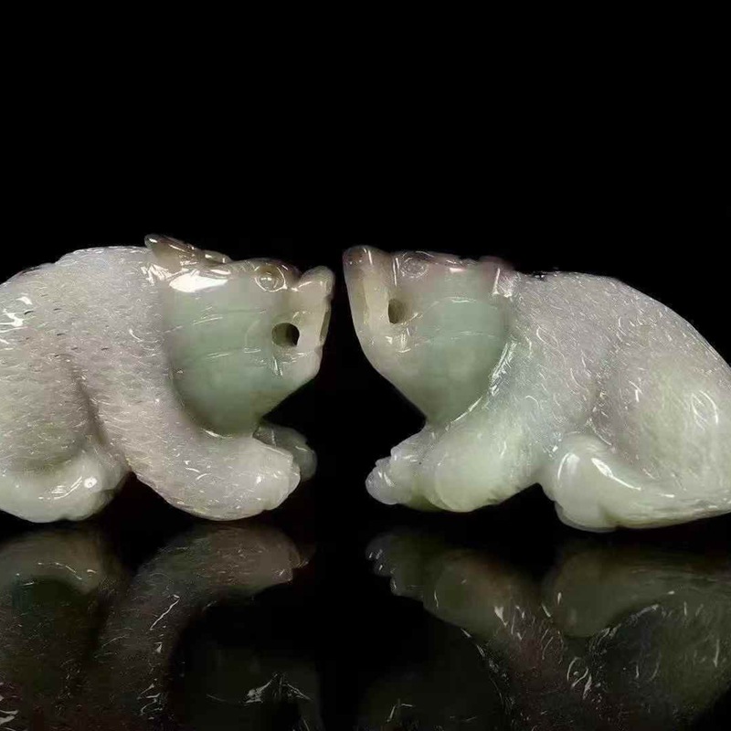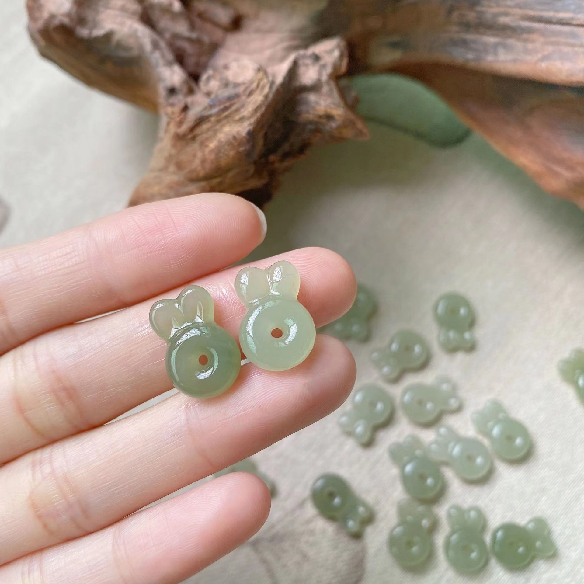 天然和田玉青海料玉兎晴水料萌え兎diy編み部品ビーズブレスレット手串手縄女