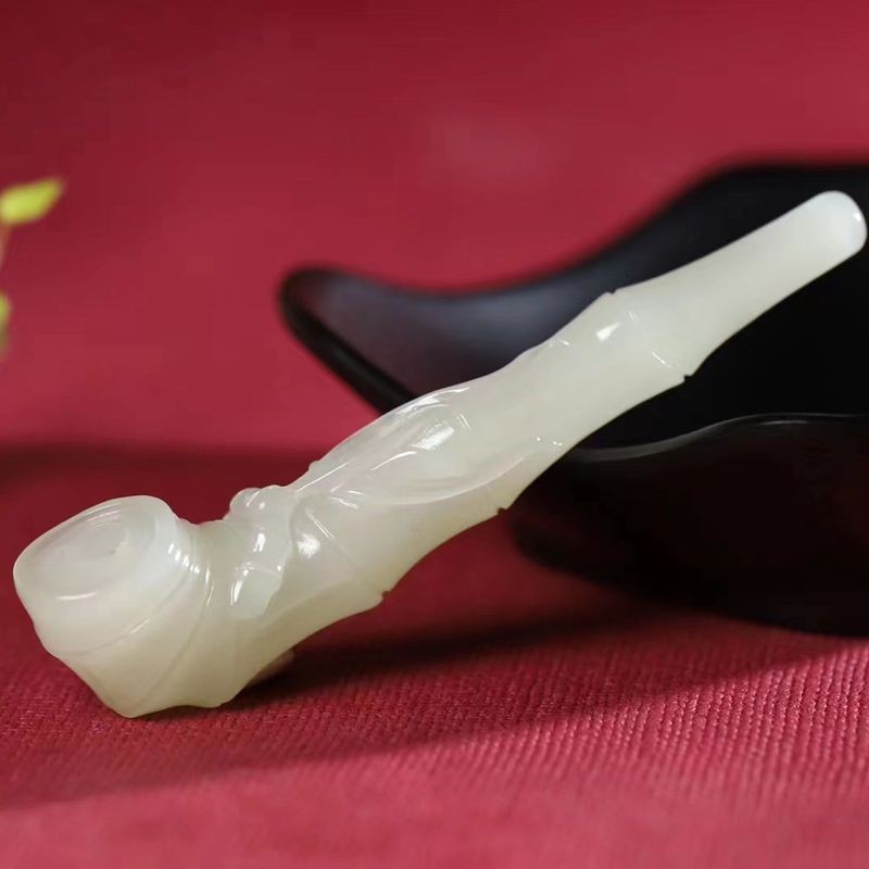 玉器工芸品天然新疆と田玉青海材料の古い材料の暖かい白い玉の竹の節のたばこの口の男性の金は証明書を送ります。