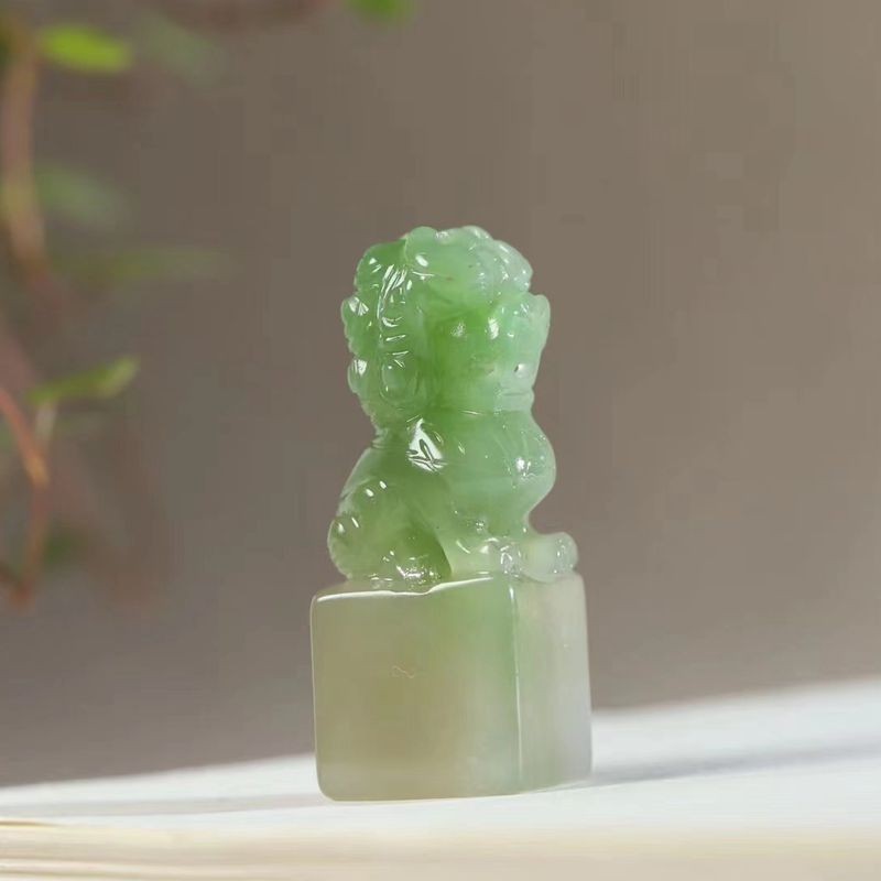 玉器工芸品天然新疆と田玉青海の古い材料が美しい翠色の獅子の印鑑の玉の置物は証明書を送ります。