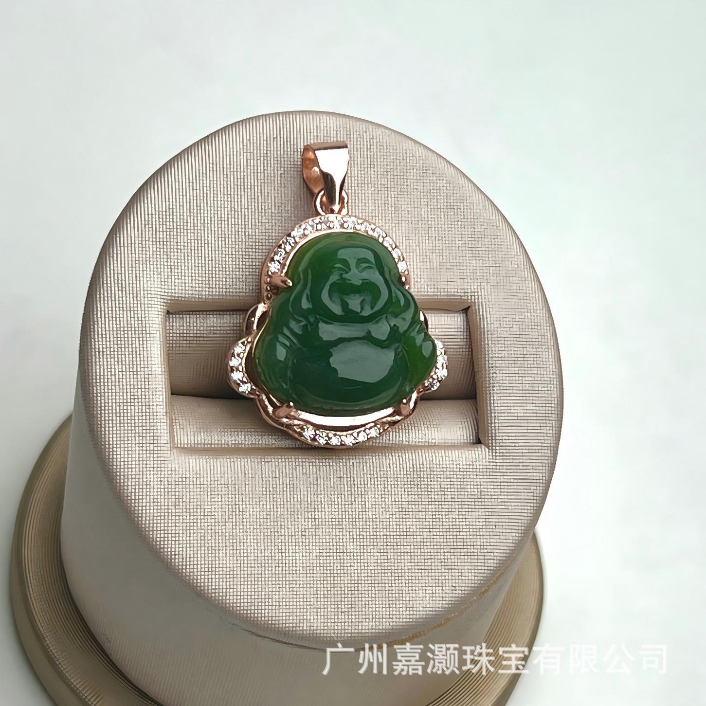 嘉和田碧玉笑仏はS925銀金メッキの精巧でシンプルなペンダントをはめ込んでいます。