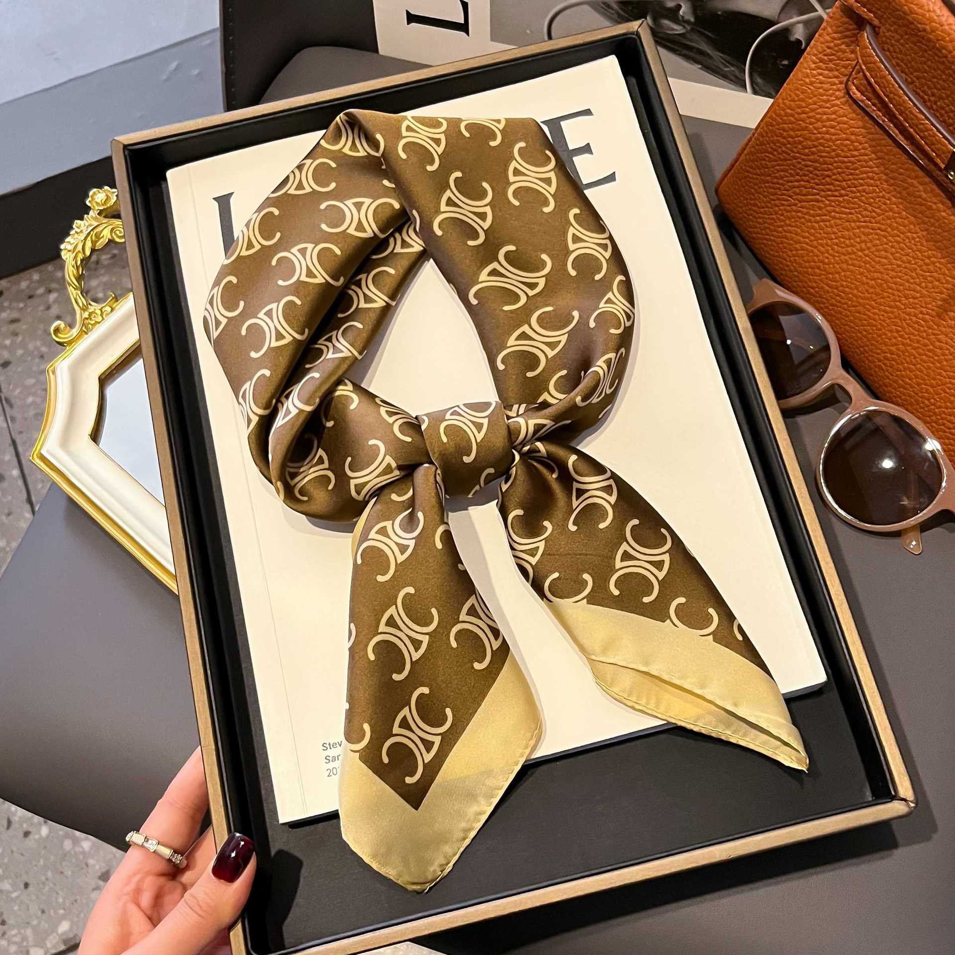 韓国版の新しい秋と冬の小さなシルクスカーフ女性の模造シルク多用途プロフェッショナル小さな正方形のスカーフメーカー卸売杭州シルクスカーフ