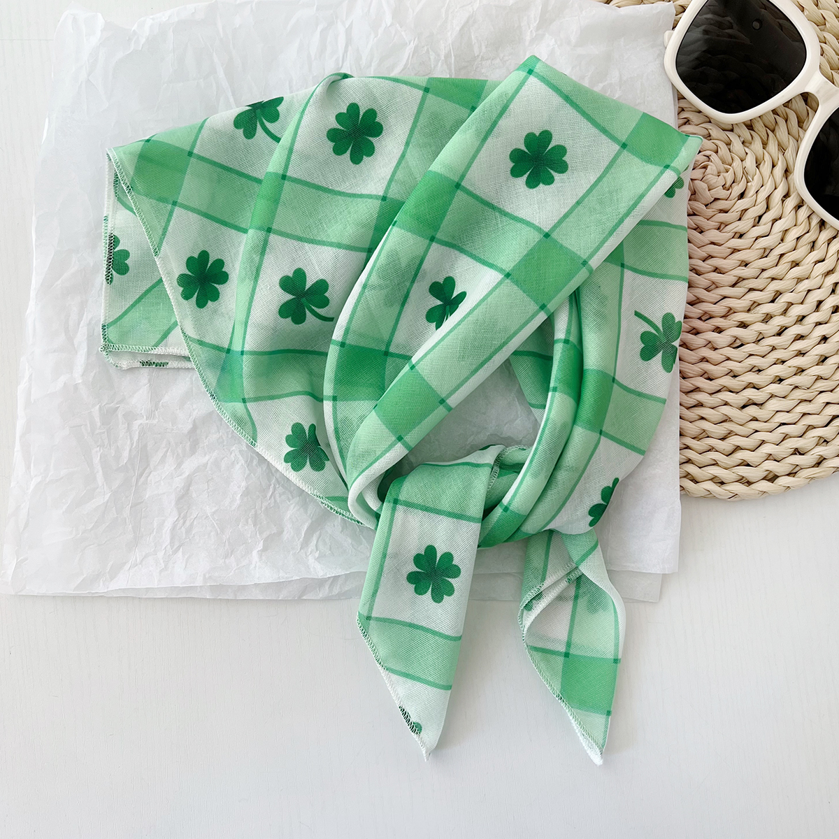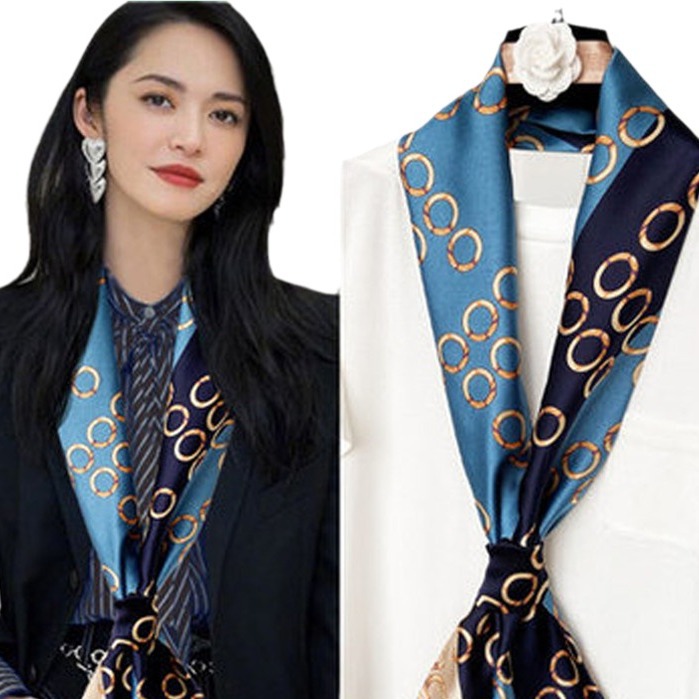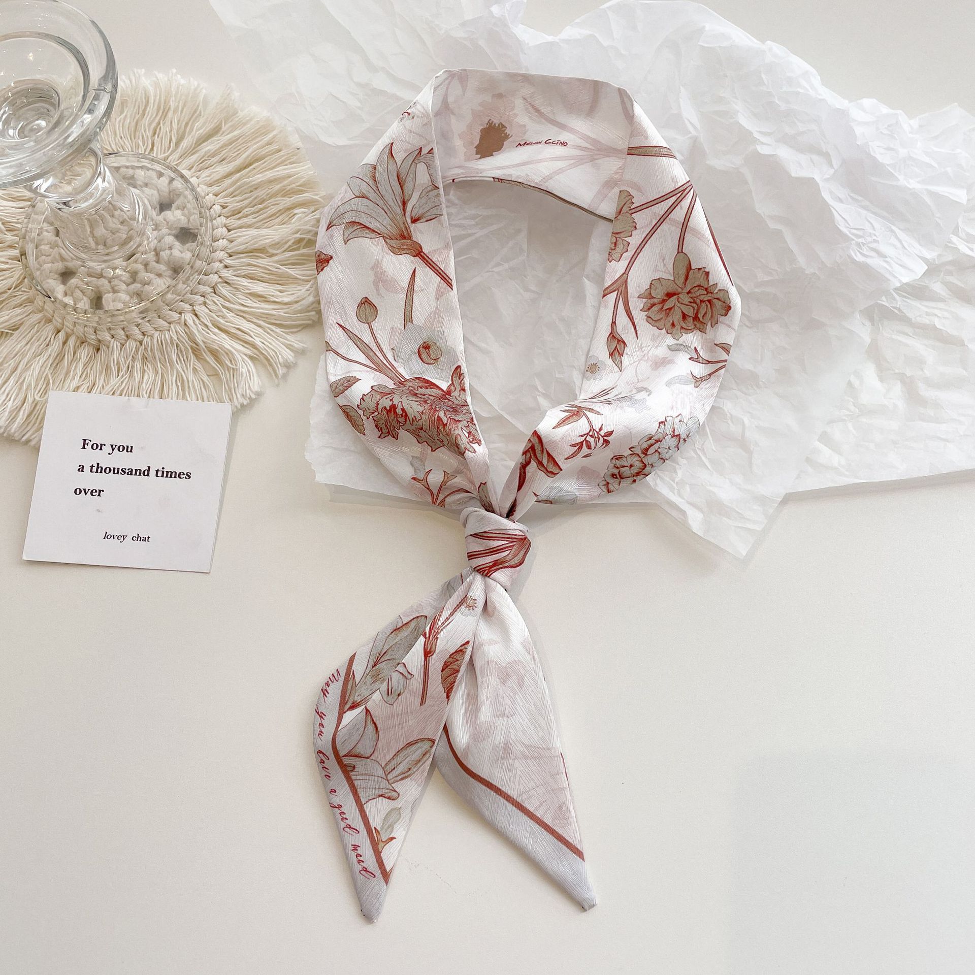 韓国版insプリントのシルクタオルの女性の薄いタイプの小さい方のタオルの春の夏のシミュレーションのシルクのマフラーは首を囲んで飾ります。