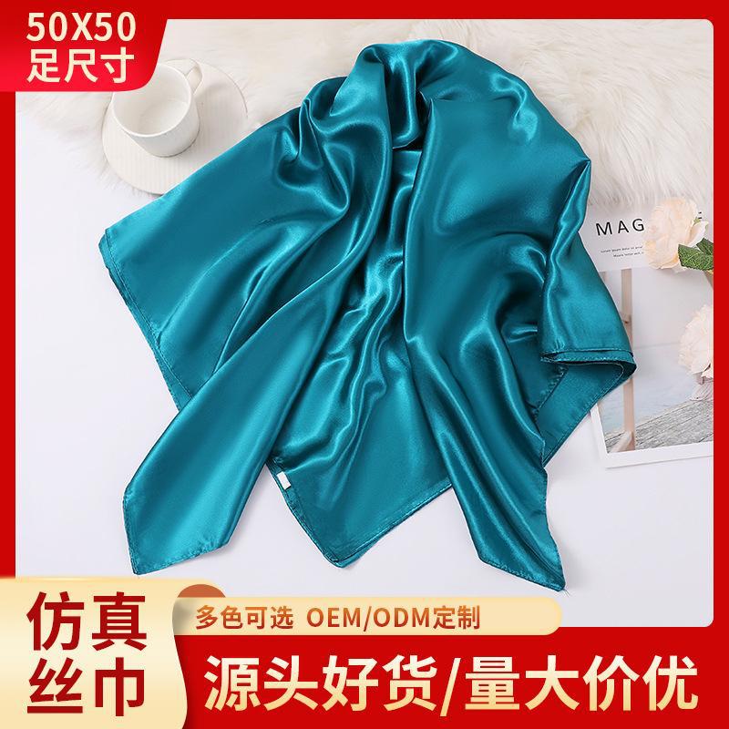 50cmサテンの新しいシルクタオルの純色ファッション海辺のビーチ日焼け止めストール女性マフラー両用純色シルクタオル