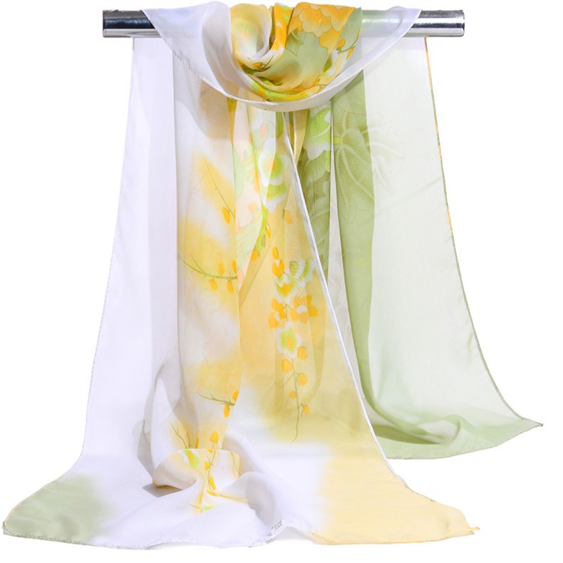 春と秋の新型ファッション中国風のハスの花のプリントのマフラーの女性の薄い金の喬其の紗のスカーフの装飾のマフラーの卸売り