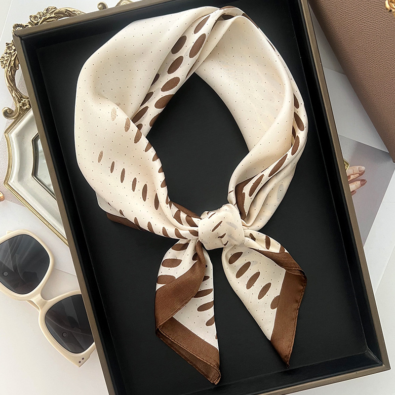 女性用シルクスカーフ、ヨーロッパとアメリカの新しいポリエステルスカーフ、シンプルなプリントの小さな正方形のスカーフ、ライトラグジュアリースタイル、母親のハイエンドギフトスカーフ