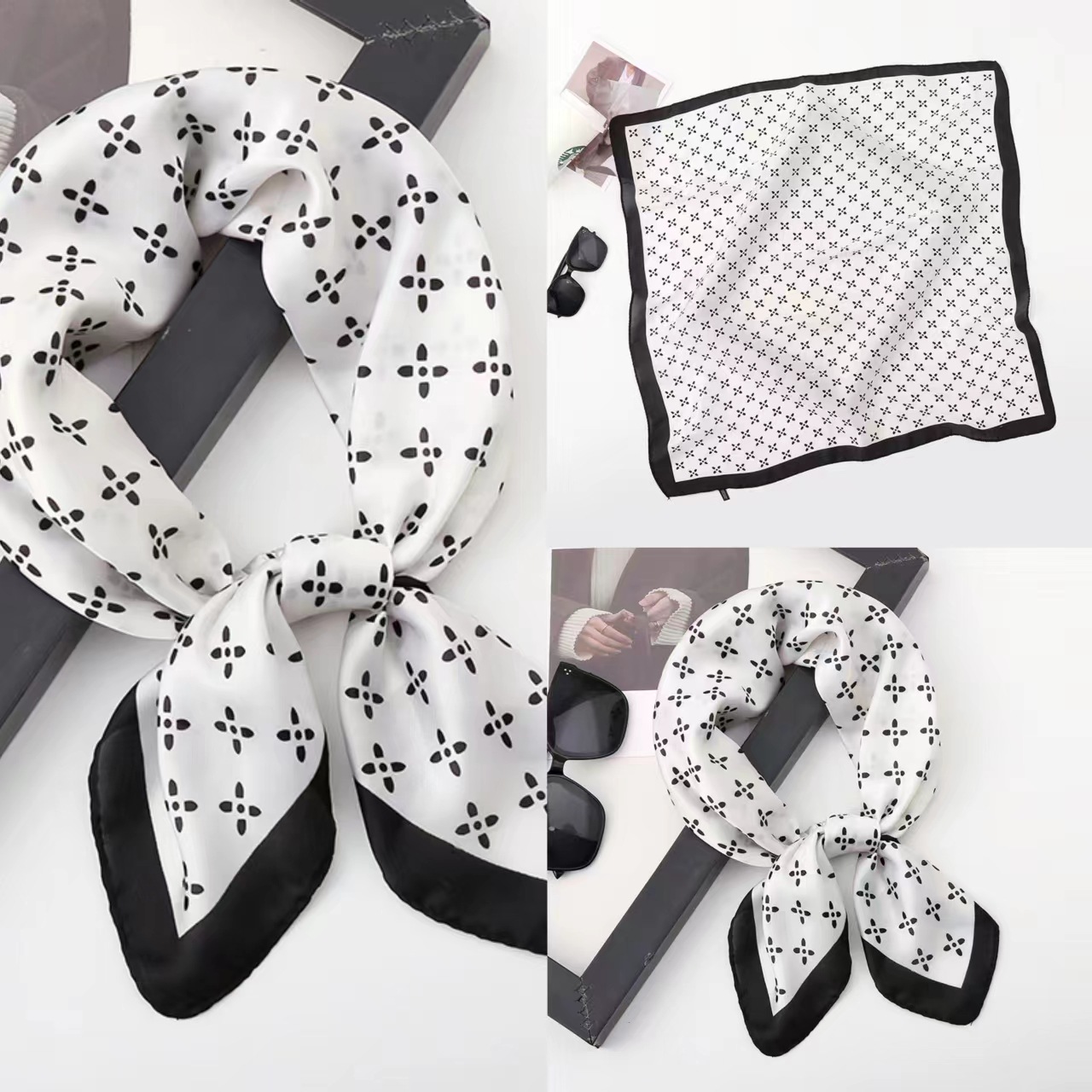 70小方巾シルクタオルV韓国版高級感アルファベットプリントシルクタオル女性職業シルクタオルサテン