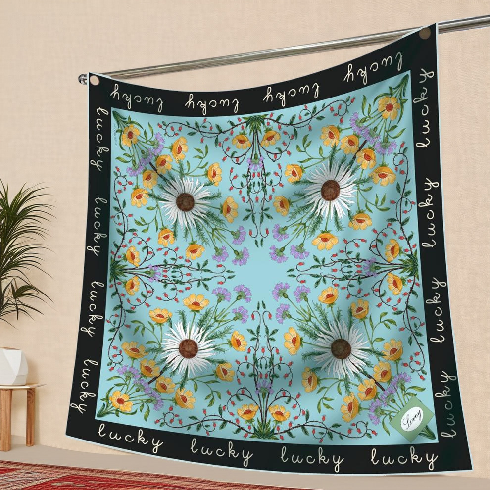 ディザトーン生放送のソース90cmの大方巾はシルクプリントのサテンのシルクタオルを模倣しています。