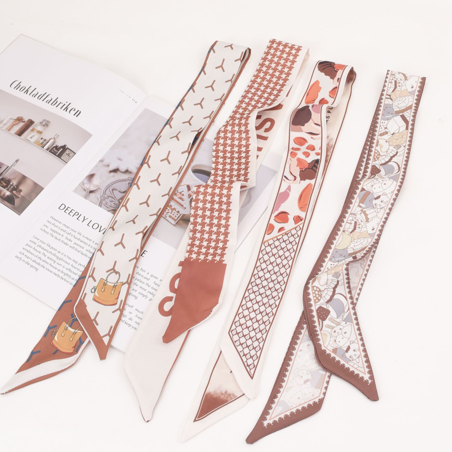 Xiangchenの新しいスレンダーバッグハンドルシルクスカーフ小さなリボン装飾バッグストラップ女性の既製の小さなスカーフ