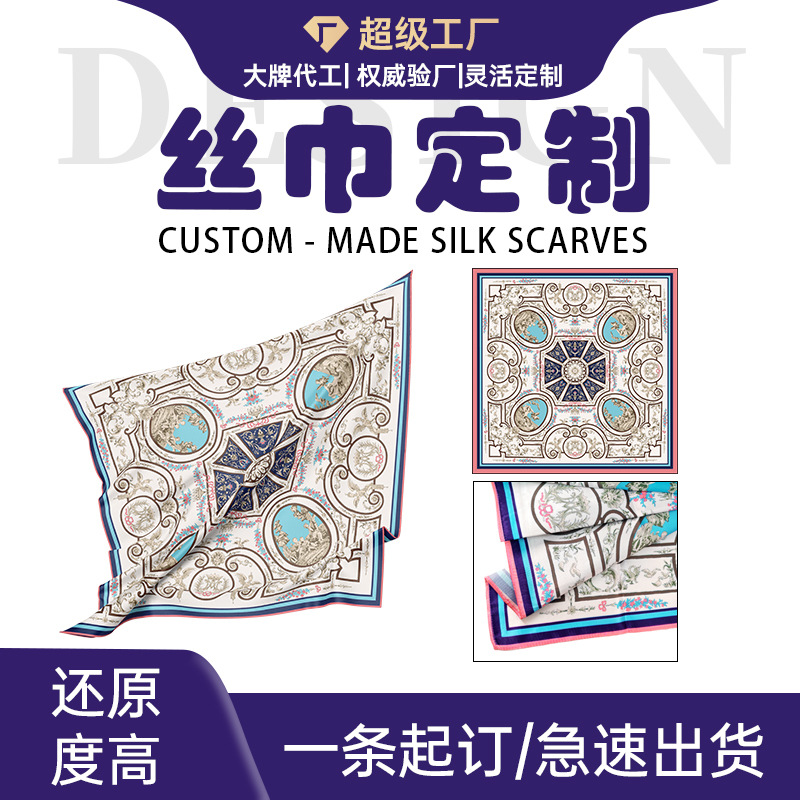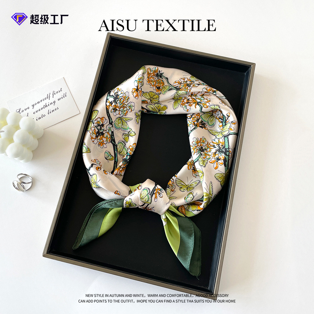 クロスボーダー合集腰果シルクタオル女性新商品70小方タオルファッション百合襟タオル高級感プリント装飾