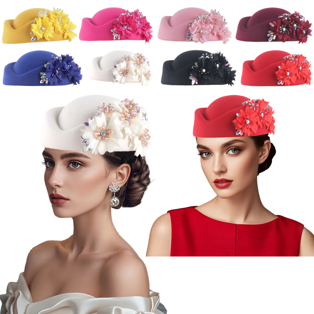 欧米のレトロな英倫のフェルトのスカーフの帽子の女性の教会のダービーの頭飾りの花の女性の柔らかいベレーの帽子