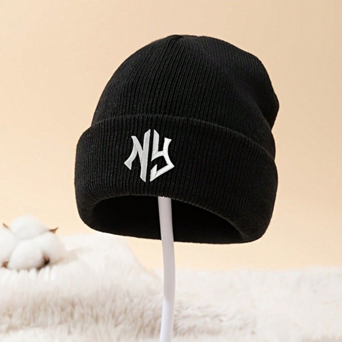 クロスボーダー子供向けトレンドブランドNY文字刺繍入りウールニット帽秋冬用防寒帽子大文字ロゴ入り保温おしゃれ冬用保温