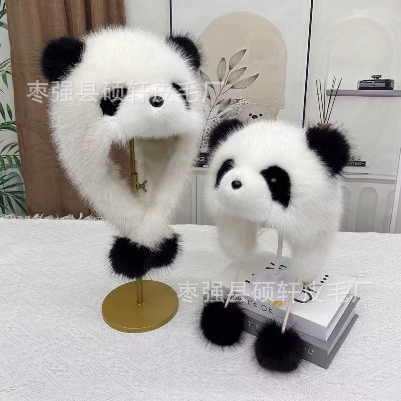 ネットの赤い新型のパンダの帽子のファッションはキツネの毛の耳の帽子の成人の子供の冬の親子の帽子の卸売りの潮をまねます。