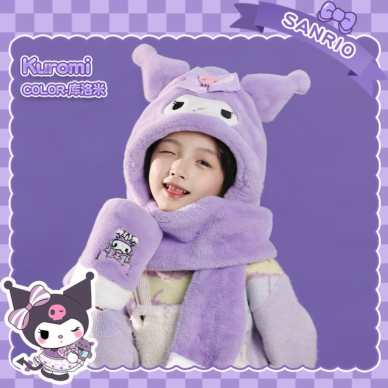 かわいい子供の帽子三点セットとベルベットの厚い帽子子供の連体帽子三合一ぬいぐるみ熊帽子が保温されている