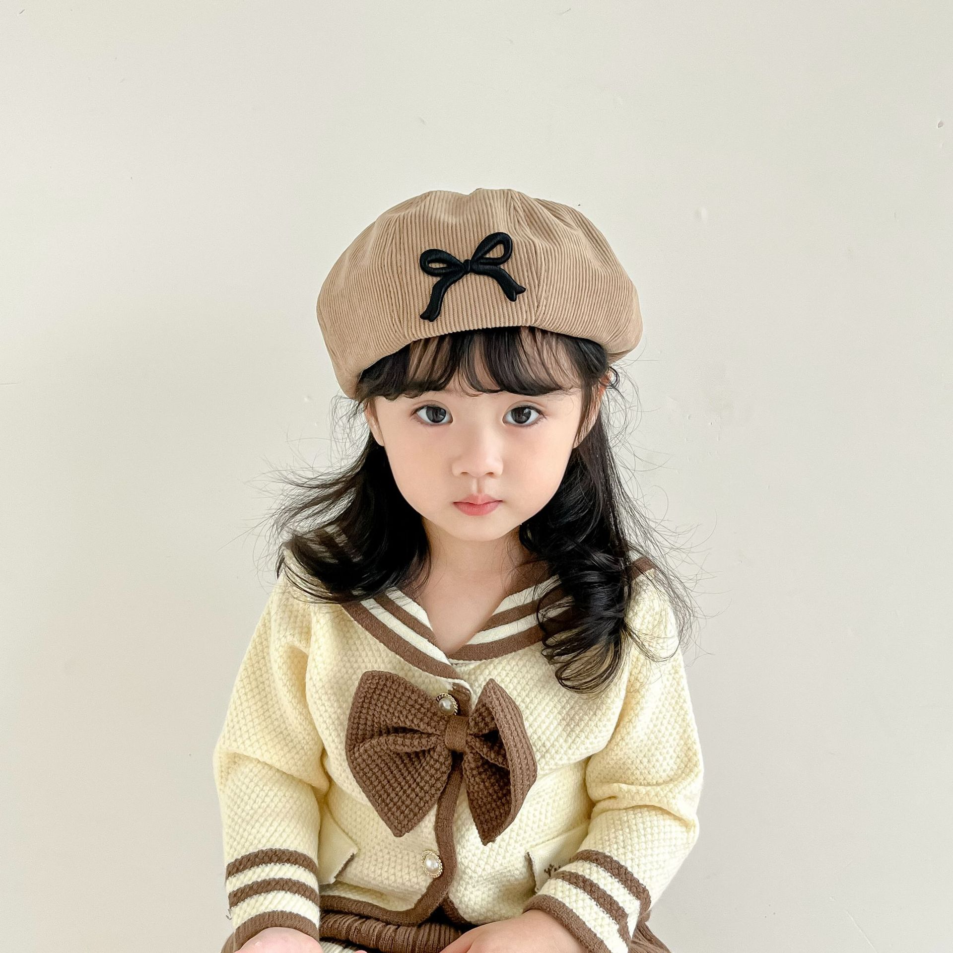 外国貿易の秋の韓国版のコーデュロイの蝶結びの王女の風の女の子のベレーの帽子の洋気のカボチャの帽子の赤ちゃんの画家の帽子