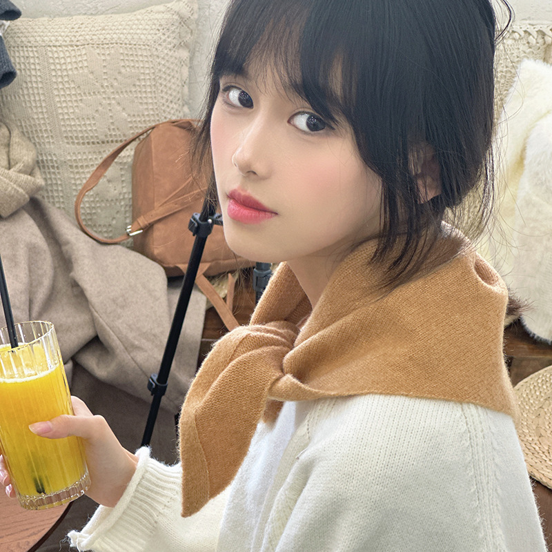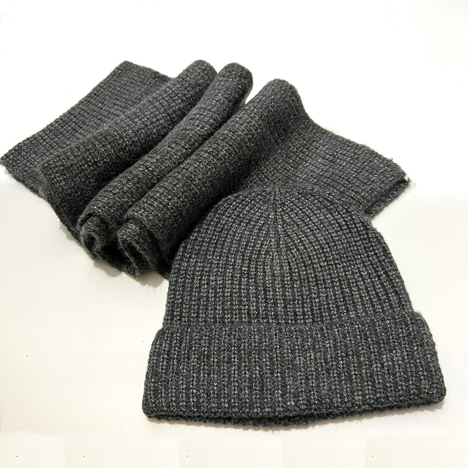 新型ウール混紡純色ニット帽子マフラー2点セット