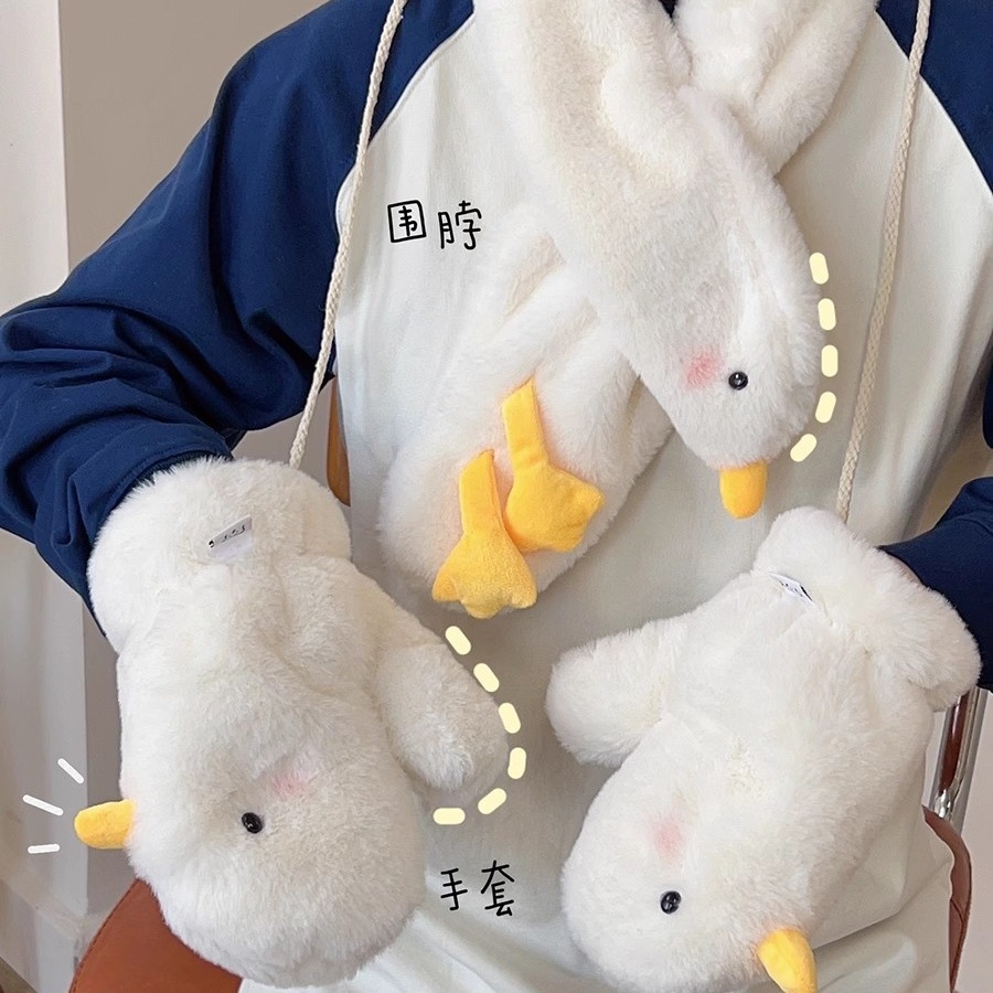 アニメのアヒルのアヒルの手袋の女性韓国の新型の冬の保温のぬいぐるみのかわいい首の指の手袋の防寒防風