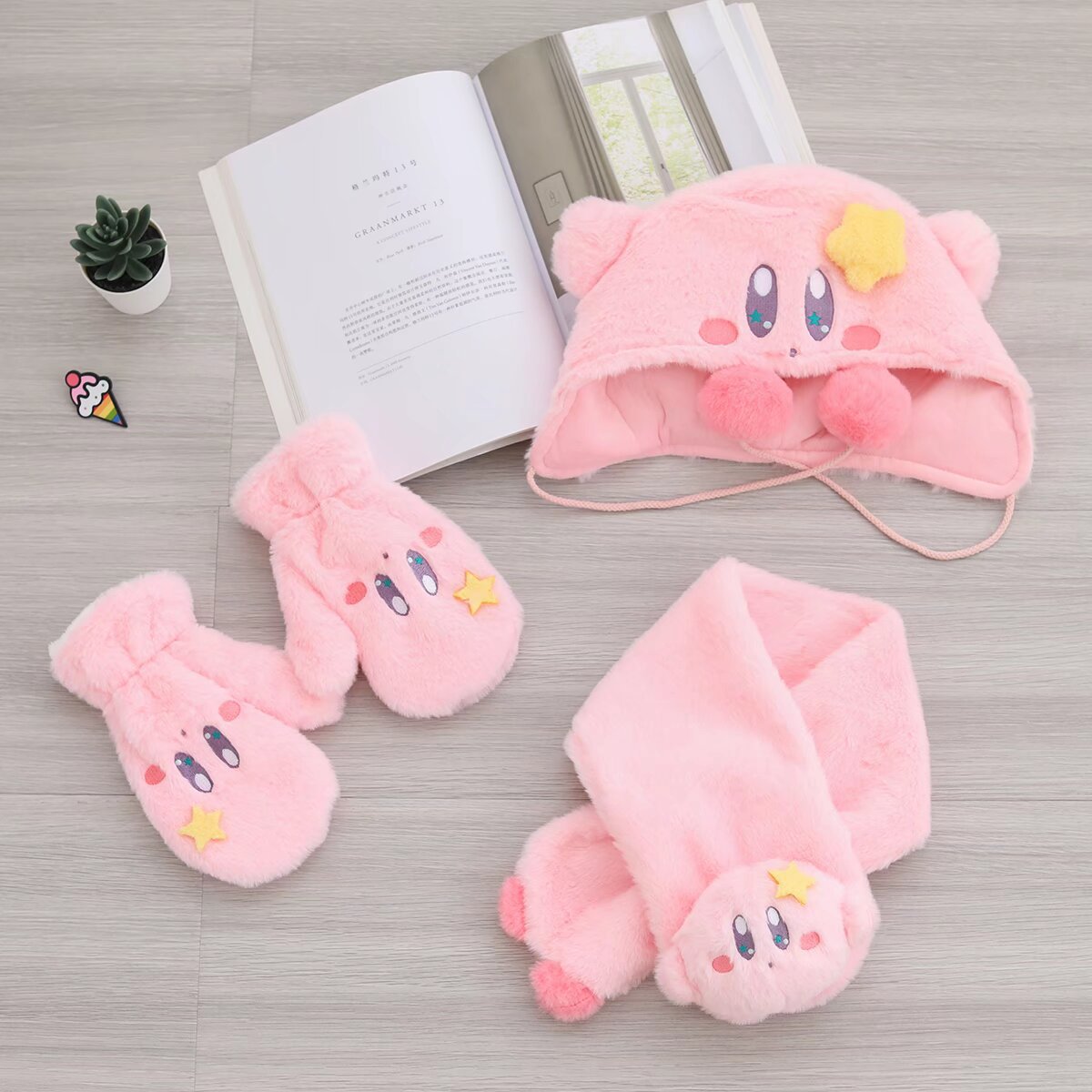 かわいいカービィ手袋帽子スカーフ冬ぬいぐるみ暖かいピンクガーリーハートスカーフ女の子のための寒さから守る