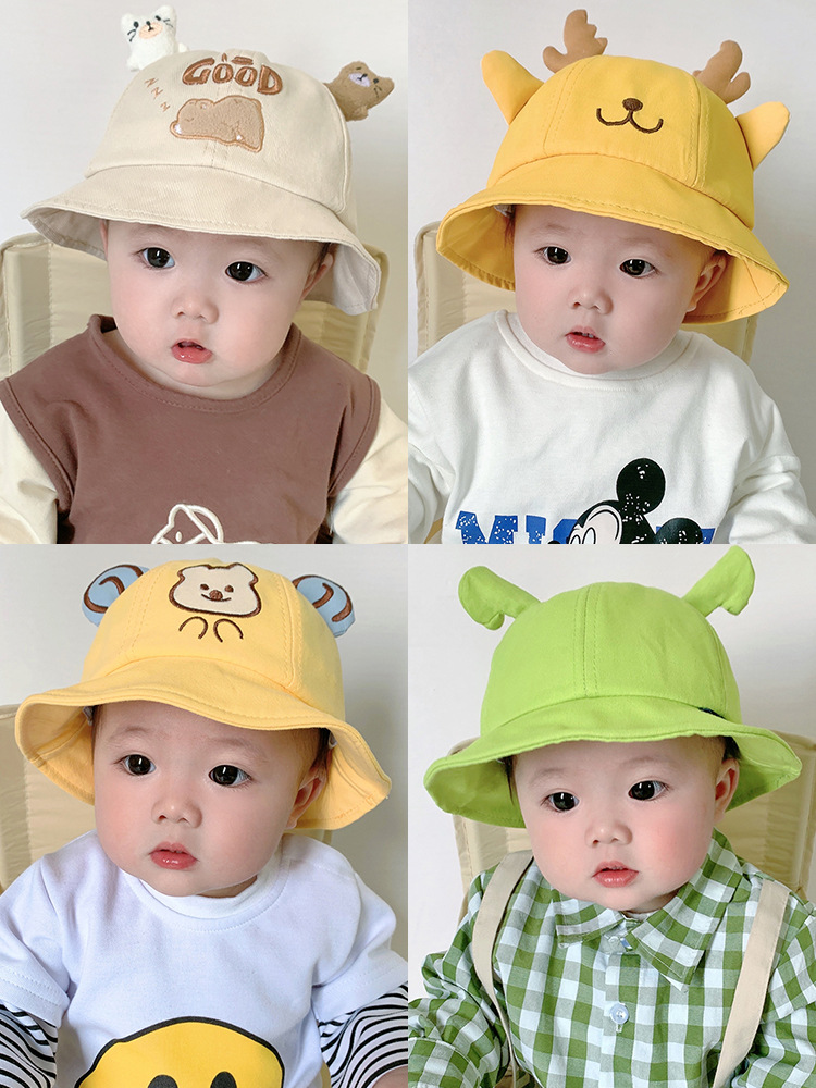 Ins韓系熊男女赤ちゃん子供帽子春秋ファッション薄手乳幼児日よけ日焼け止め漁師帽子