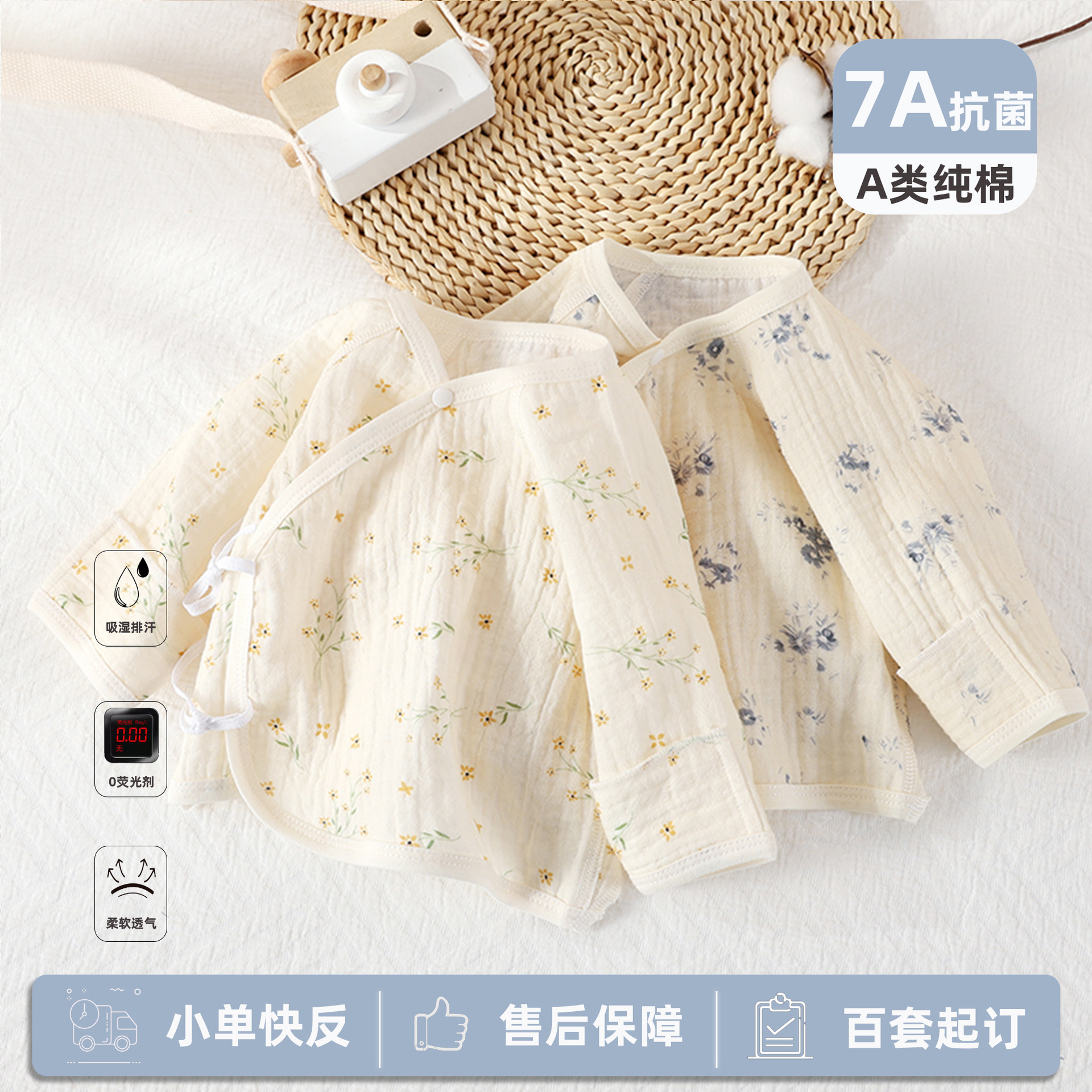 ベビーピュアコットンクラスA長袖ハーフバックダブルガーゼ薄手春夏秋新生児モンクトップ風邪予防