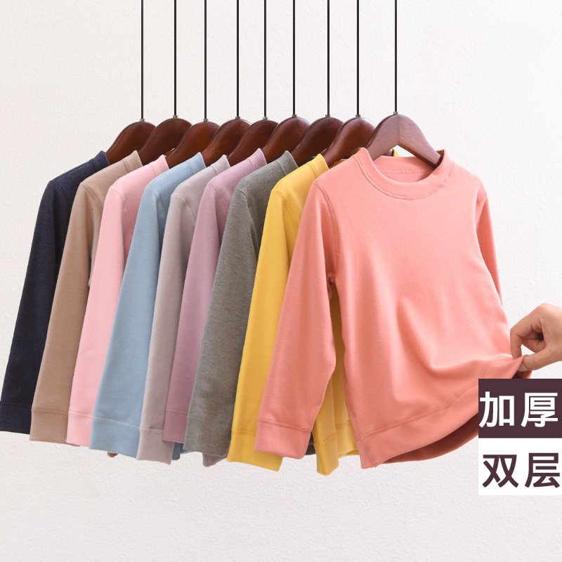 両面真徳パイル保温下着児童ベルベット無痕上着男女児童秋冬底シャツ中大童秋衣