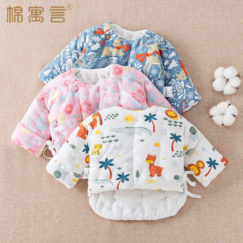 半背衣冬初生赤ちゃん服秋冬赤ちゃん新生児綿上着を挟んで保温冬服を厚くする