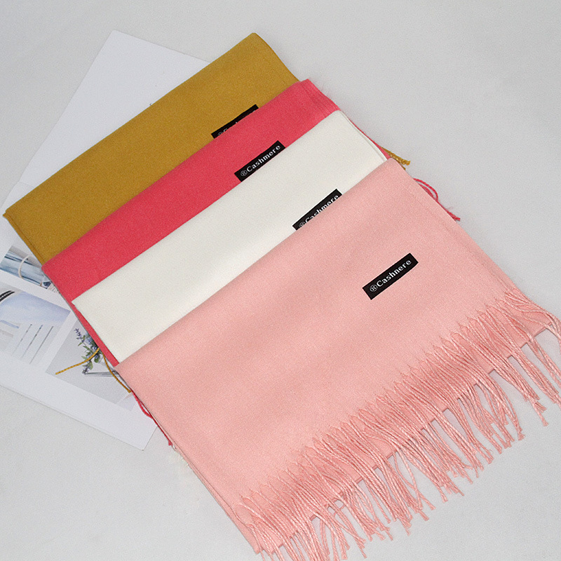 カシミヤのマフラーの女性の純色をまねて、秋冬に保温の単色を厚くします。