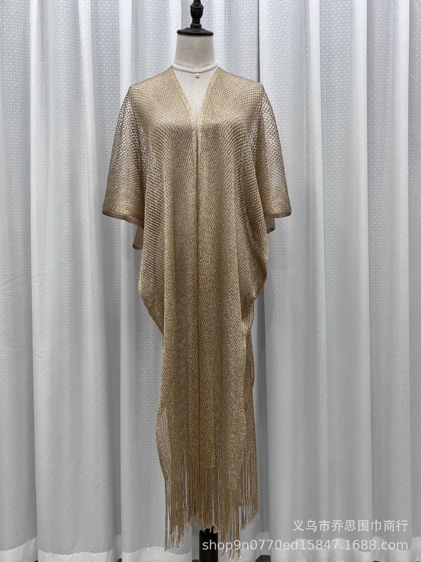 欧米風クロスボーダー小網金糸延長版開叉ストール女性薄手ディナードレス外装装飾フリンジ