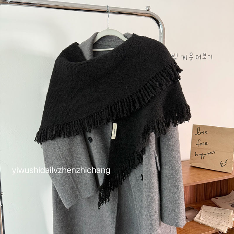 新型秋冬高級感韓国百合流蘇は保温外に三角巾を掛けてウールのマフラーのストールを編みます。