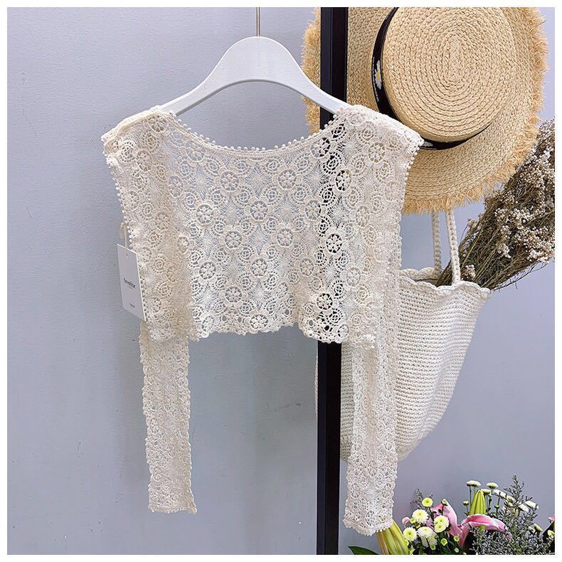 日焼け止めレースブラウス女性の夏の外に小さなストールをかけます。