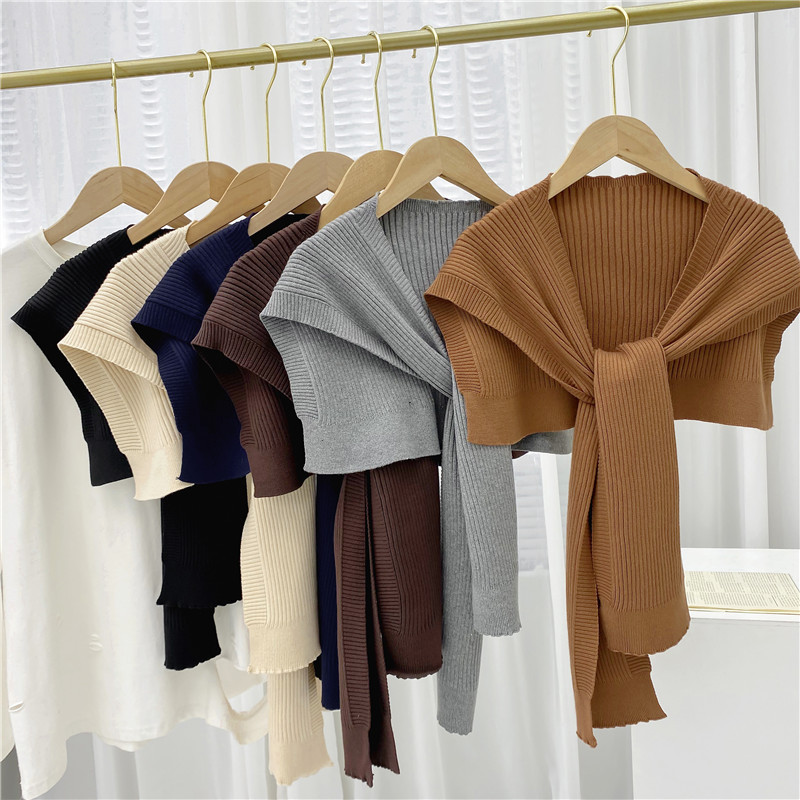 ニットショール、クロススタイルの結び目付きベスト、オフィスエアコンルーム用、首を保護する肩掛けスカーフ、シンプルなスタイル