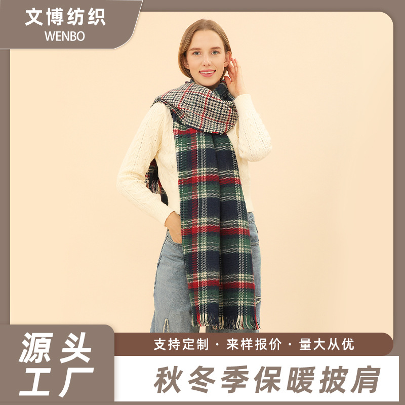 女性の新しいショール厚いラインチェック柄スリット暖かいショールマント秋と冬のシンプルで多用途な写真撮影マント