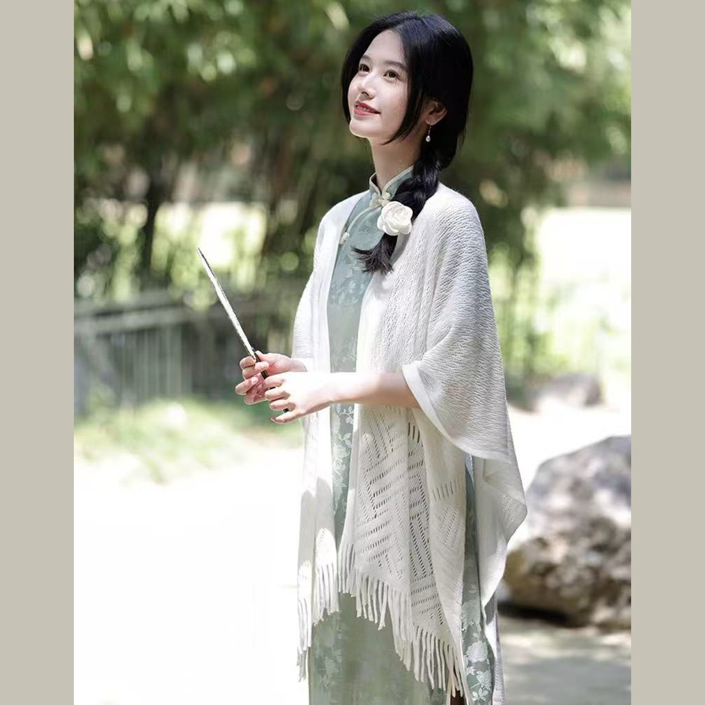 新商品のチャイナドレスのストールの小清新な文芸はエアコンのストールの透かし彫りの外にチャイナドレスを掛けて新商品のシャツを開けます。