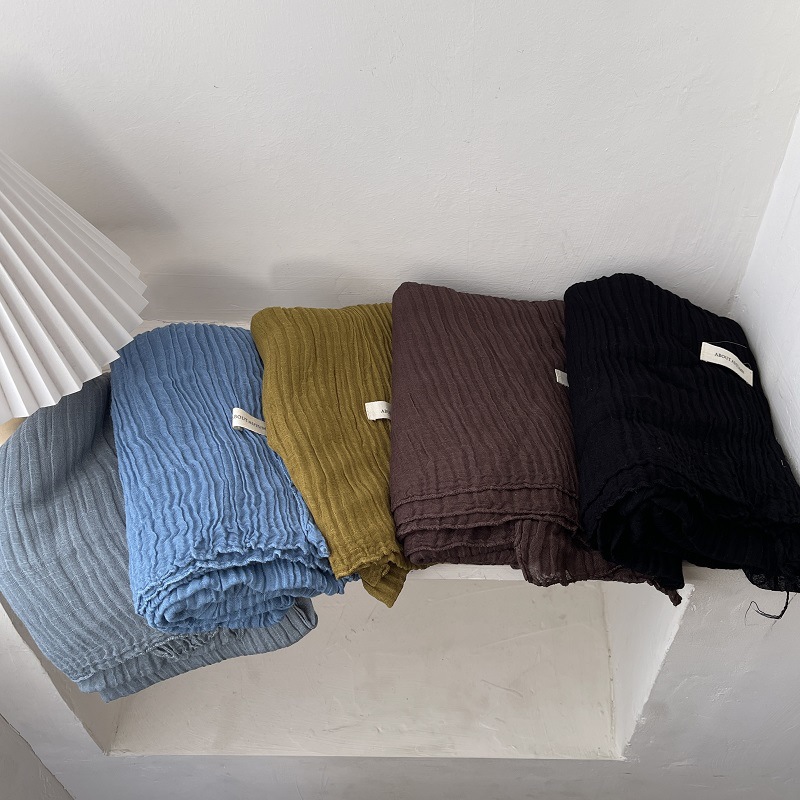 古早感レトロな純色の綿麻のしわのマフラーの女性の文芸のマフラーのストールの春の夏の雰囲気感の百合のマフラー