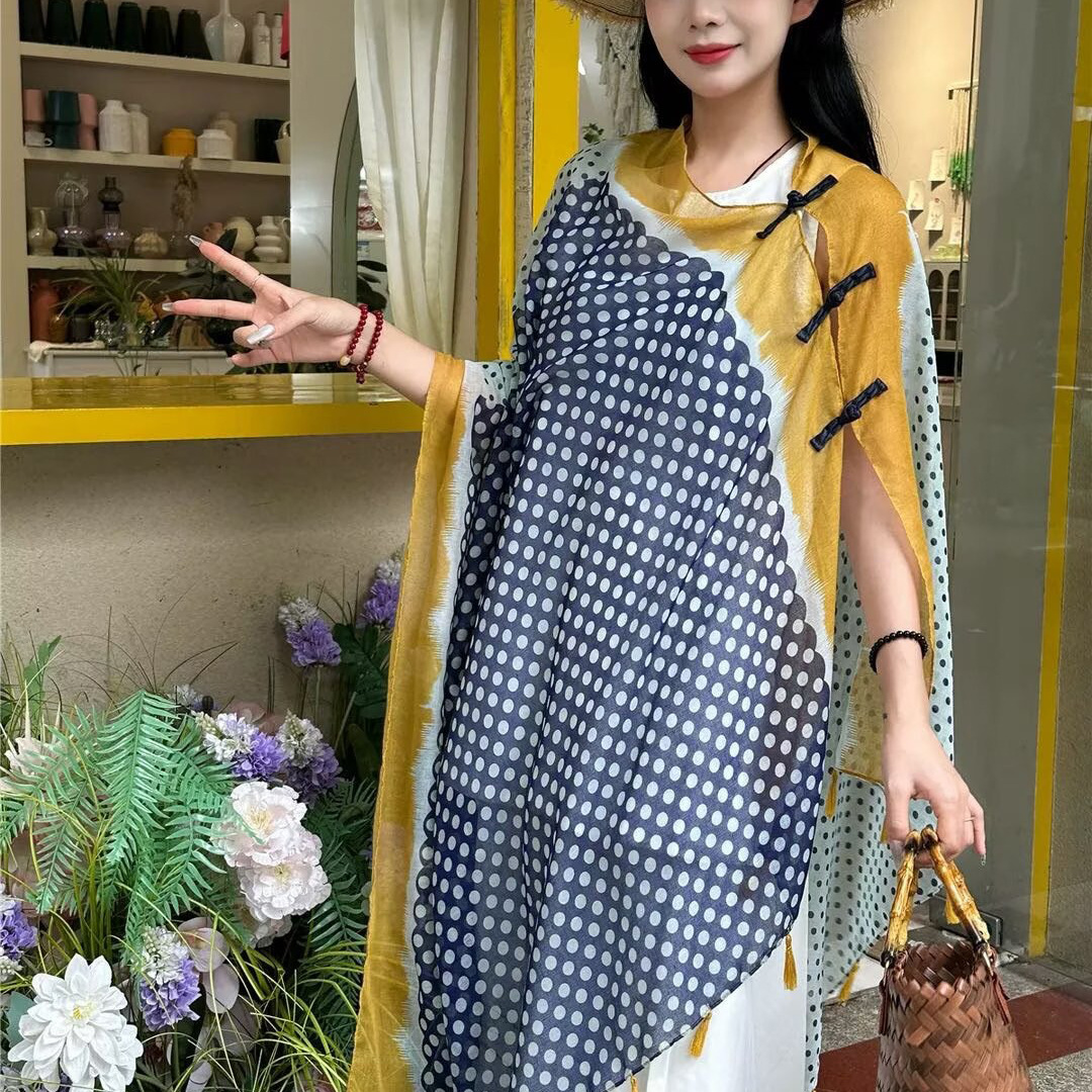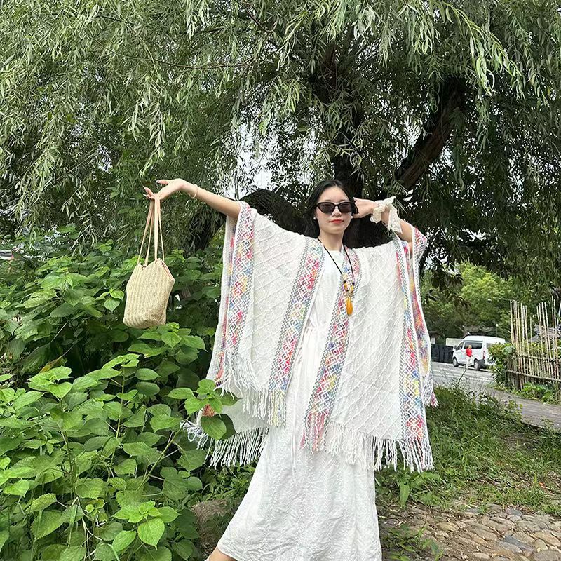 新しいエスニックスタイルのバックルアウターウェア夏チベット旅行日焼け止めマント薄い海辺の休暇ビーチタオルショール