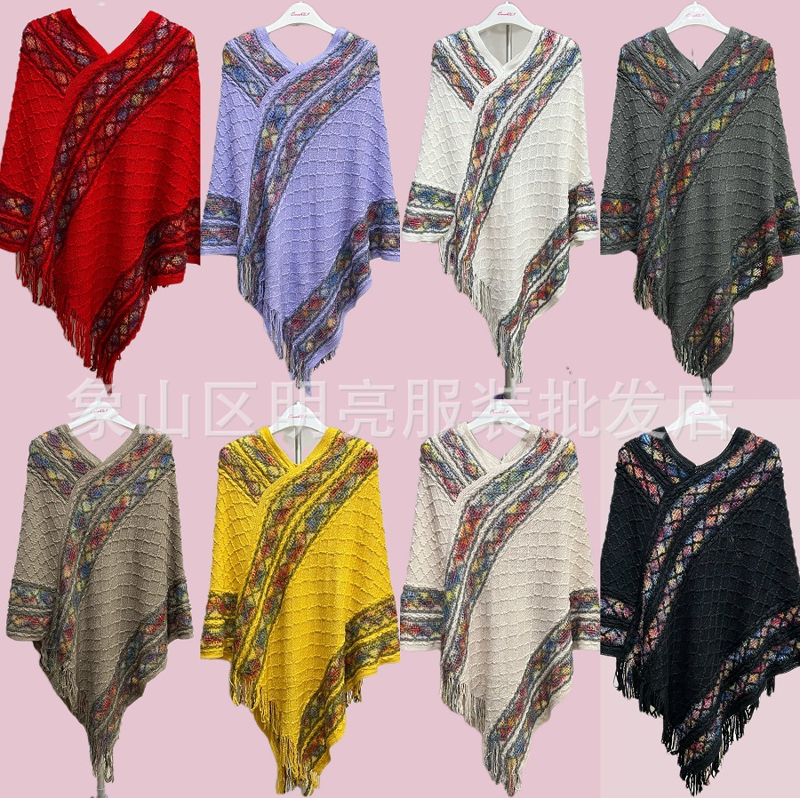 新しいホット春と秋のプルオーバーマントショールタッセル暖かいニット大きいサイズルーズブラウスマントトップ在庫あり
