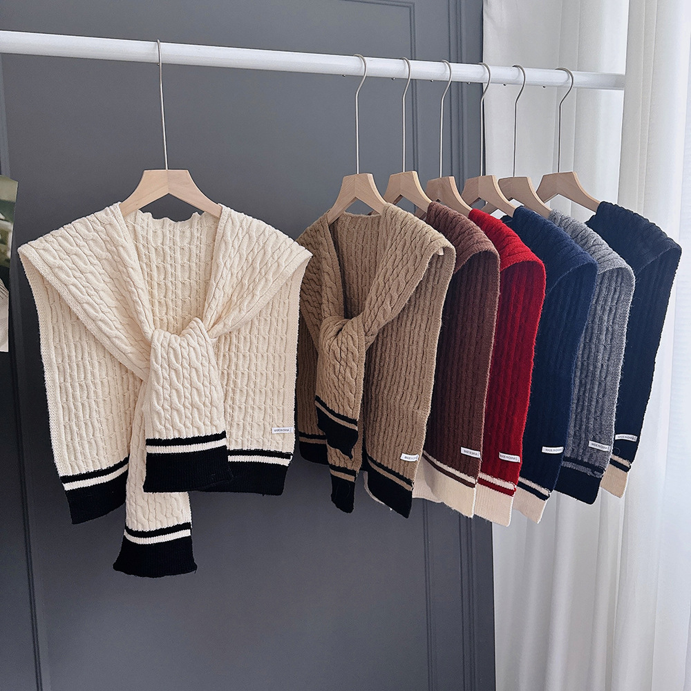 韓国版カンカン肩春秋の短いウールニットのストールの女性は、マフラーの外に毛糸の偽襟で肩を組んでいます。