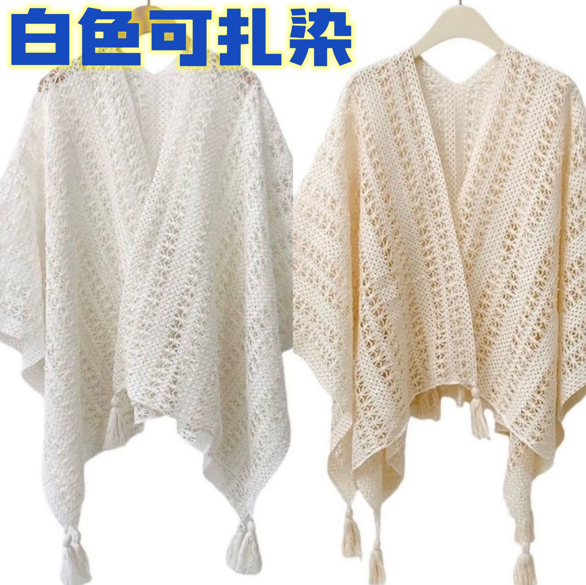 白い胚絞り染め無地中空アウターボヘミアンショール新しいスタイル多用途エスニックスタイルマントマント