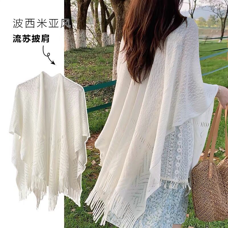 新鮮なエアコン付きの部屋多用途2025クラシック薄型ショール女性用中空タッセルファッションアウターチャイナドレスホワイトマント
