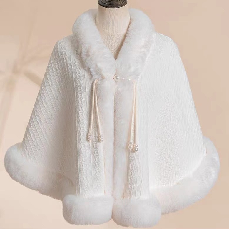 メーカー直販卸売り秋冬毛襟マント花嫁結婚糸ドレスアクセサリー赤白色コート