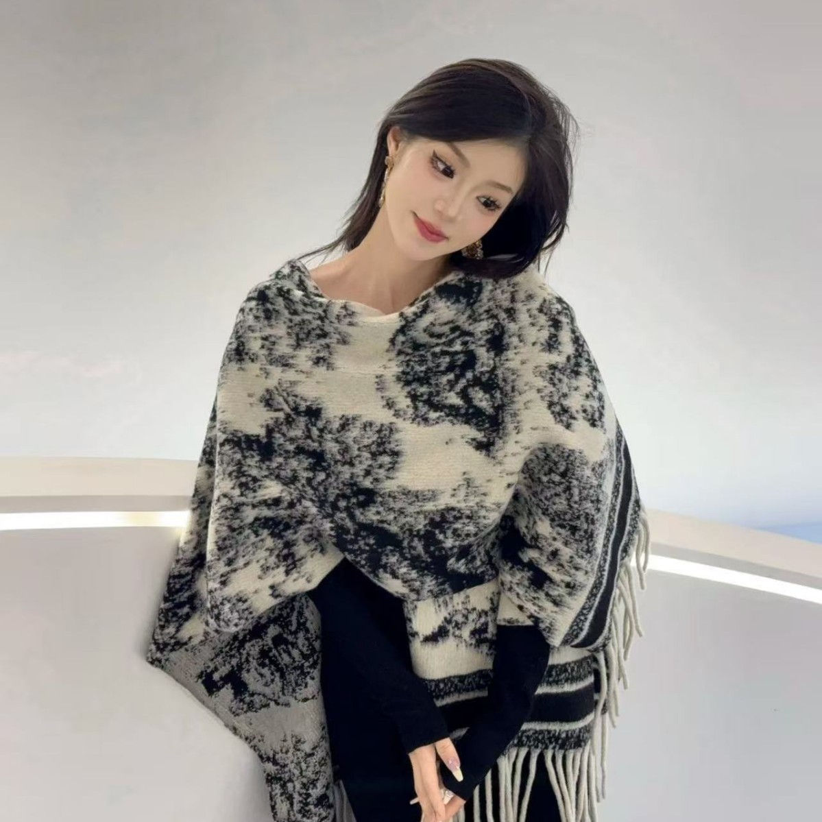 秋冬新作 レトロ 高級感 水墨画柄 ショール レディース イミテーションカシミヤ フリンジ 旅行用 多用途 暖かい マント