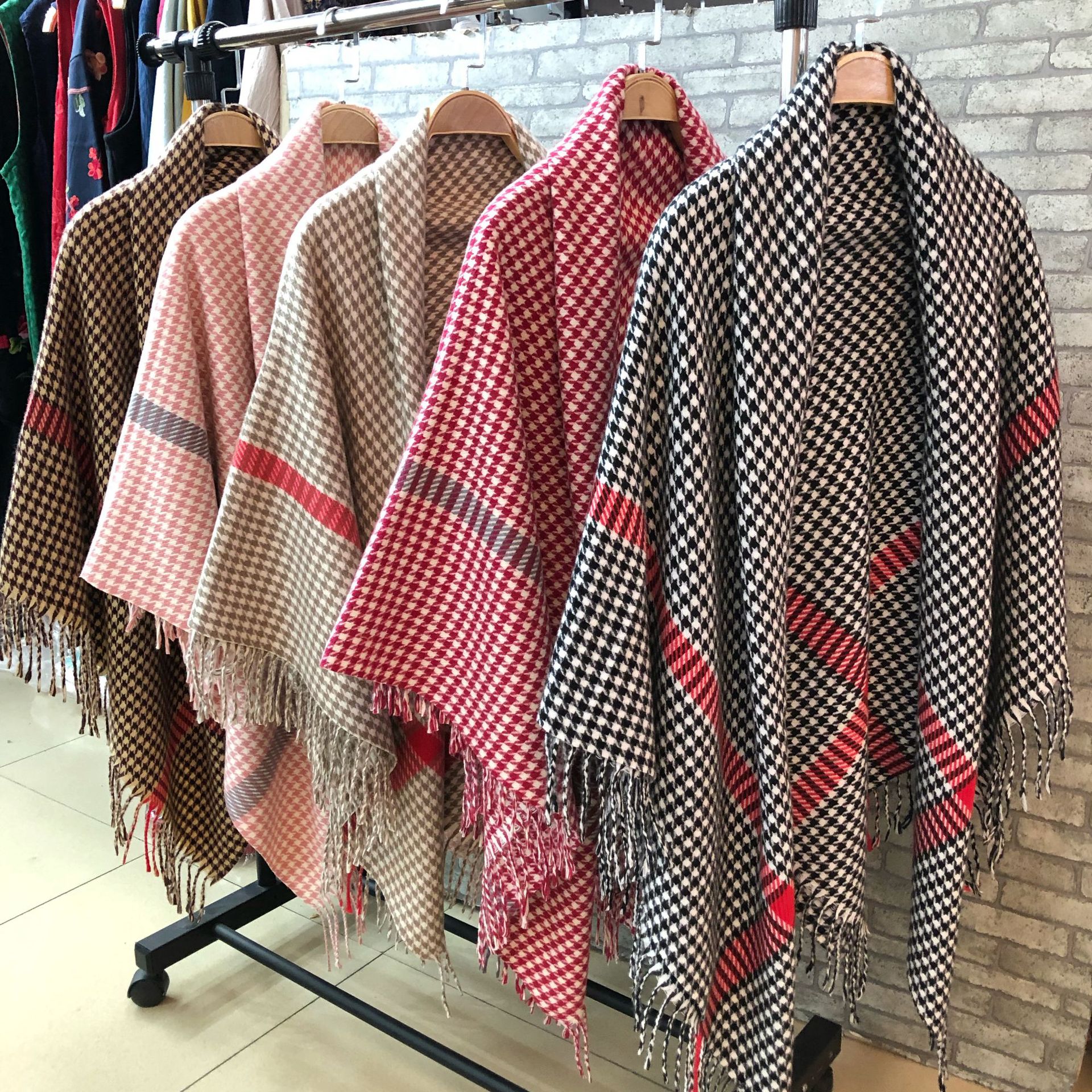 外国貿易の新型フリンジオープンストール秋冬女性シンプルな格子ジャカードマフラーマントが国境を越えて人気卸売りされている
