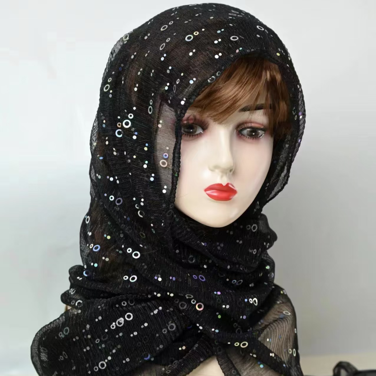 新商品のクロスボーダーの包頭のガーゼのスパンコールの金銀の薄いタイプの百合のマントのドバイのマレーのファッションのスカーフの女性