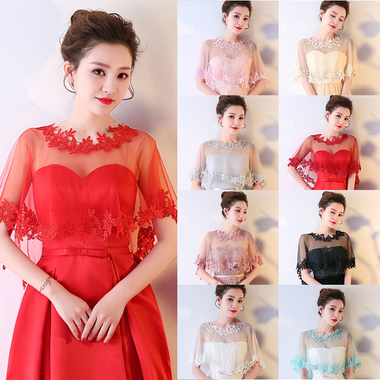 花嫁の結婚の糸のショールのウェディングドレスのマントのレースの薄い金の礼儀は白黒の赤い青い大きいサイズのマントのウェディングドレスのマントを掛けます。