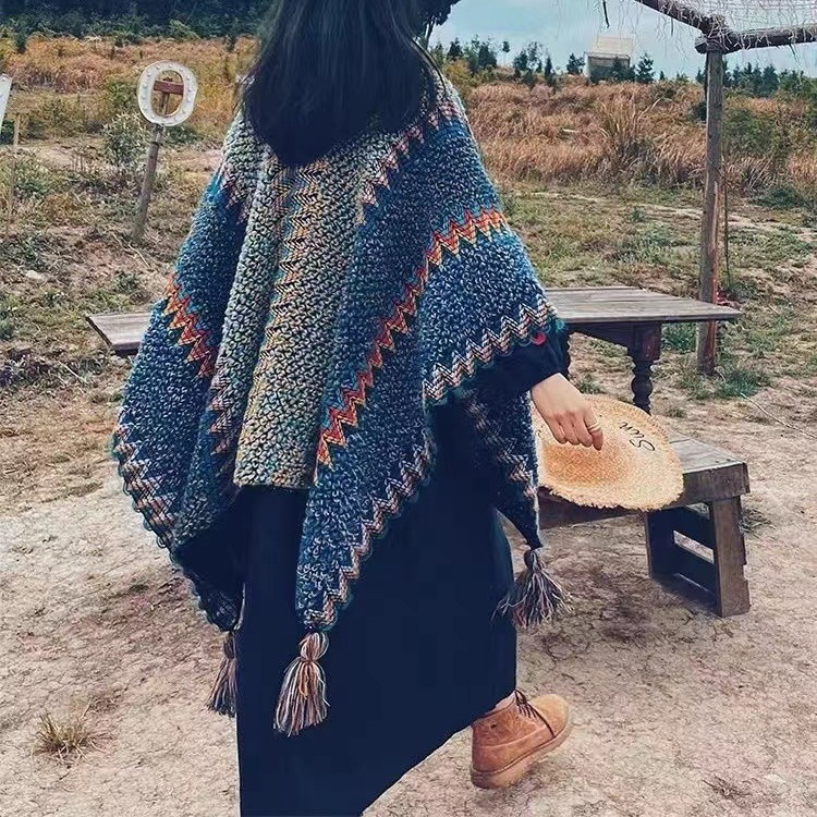 2025新型レトロ斑ニット高級感マント川西雲南旅行着写真カシミヤマント