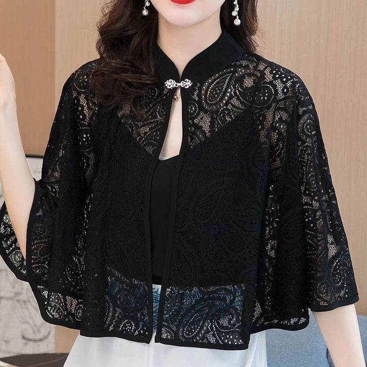 夏の薄いマントのコートの女性の2024の新型の潮の爆発のレースの外でカーディガンのマントの日焼け止めの服の復古のマントを掛けます。
